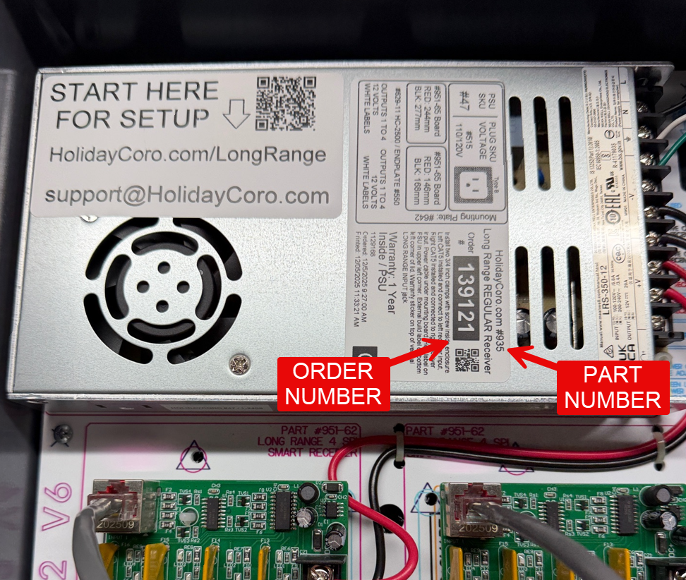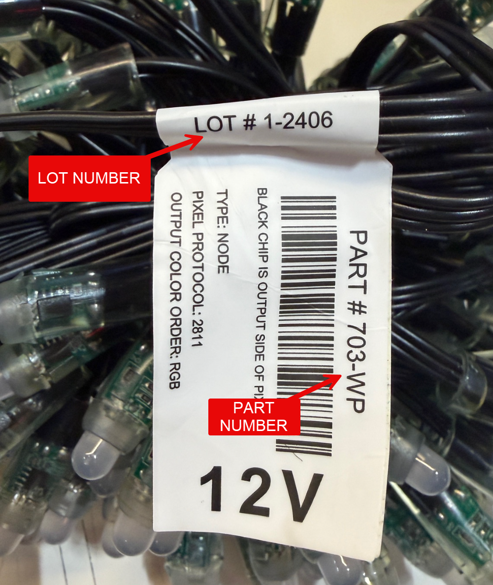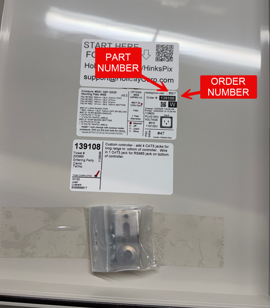 Locating HolidayCoro Order, Part and Lot Numbers for Controllers and Pixels